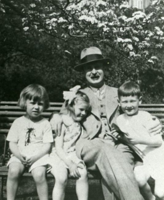 Jerzy August Gutsche z trójką dzieci.