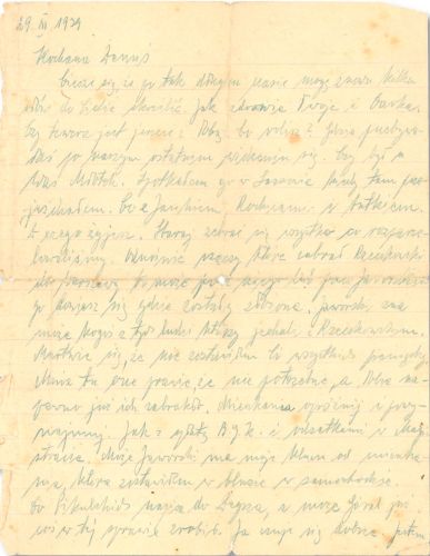 Proszę napisz obszerny list i staraj się pisać raz na miesiąc. Poza tym nic mi nie trzeba. Wszyscy sobie tutaj jakoś radzą. Paczek proszę NIE przysyłać. Da Bóg niedługo się zobaczymy. Może dostaniesz jakąś posadę lub staraj się u Władz by Ci wypłacili zaliczkę na pobory. Piszę tak by list doszedł.