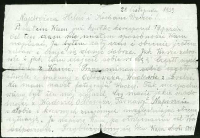 miałem sposobności Wam napisać. Ja byłem cały czas i obecnie jestem zdrów i obecnie czuję się dosyć dobrze. Jak Wasze zdrowie i jak tak dajecie sobie radę? Często myślami jestem z Wami. Przypominam sobie często chwile z wakacji z Odrowąża, Wadowic, z Łodzi. Nie mam nawet fotografii Waszej. Tak niespodziewany był ten mój wyjazd. Czy macie jakie wiadomości z Wadowic, Odrowąża, Tarnawy? Napiszcie o sobie i krewnych znajomych uwzględniając obecną sytuację. Ja napiszę Wam po otrzymaniu od Was odpowiedzi. Przybliżyliśmy się ku Wam około 500km.