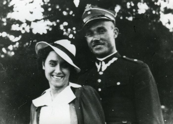 Aleksander Małkiński w mundurze podporucznika z kobietą.
