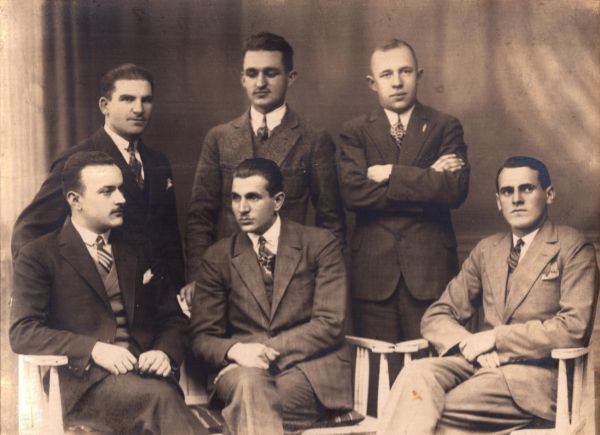 I rząd: Puchalski (Wilno), Słomiński (Warszawa), Arlitewicz (Warszawa), z czapką (Cieszyn), Olszewski (Gdańsk), Martyniak (Lublin).