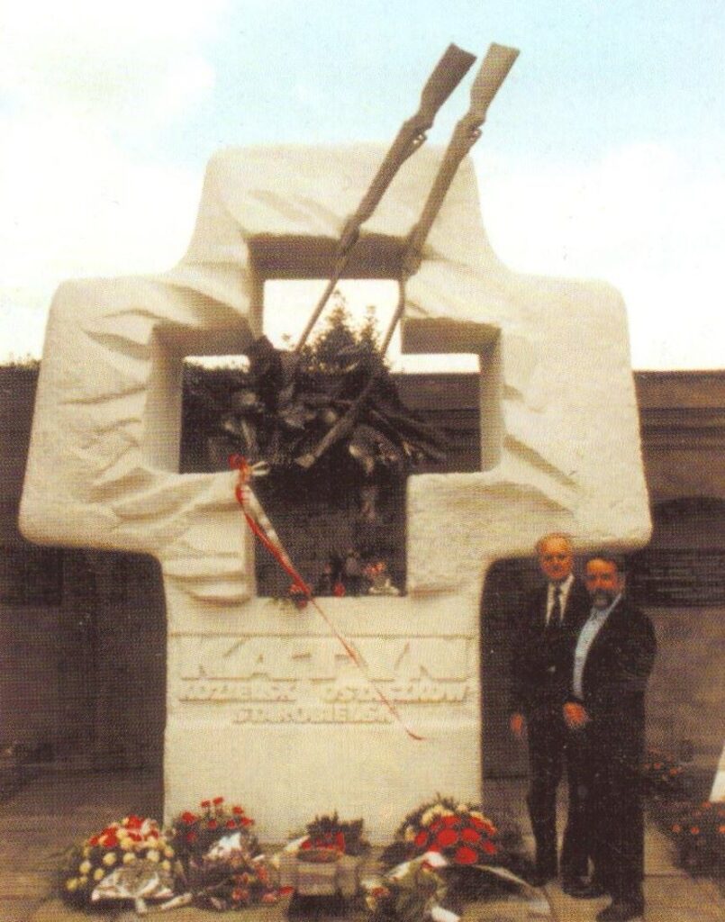 Pracą organizacyjną i nadzorem zajął się kolega Leszek Zych, traktując powierzone zadanie jako najważniejszy cel swego życia, który osiągnął 22 kwietnia 1990 roku. W tym dniu nastąpiło wmurowanie kamienia węgielnego oraz urny z ziemią z Katynia, Miednoje i Charkowa. 17 września 1991 roku, jako jeden z pierwszych w Polsce, powstał w ogrójcu wspaniały pomnik wyrażający całą grozę tamtych dni.