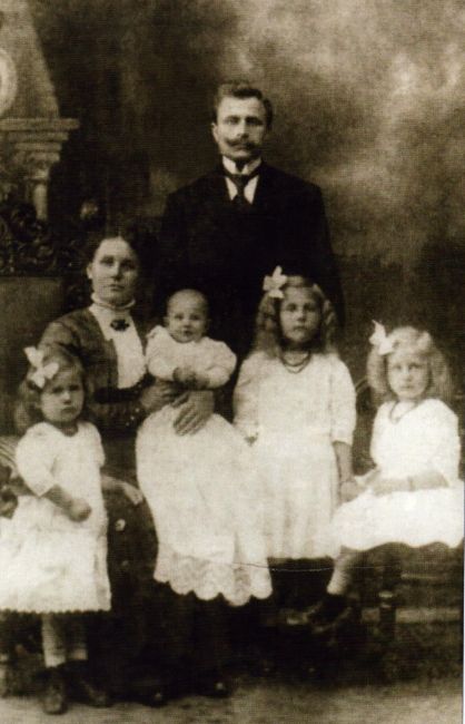 Wawrzyniec Twardy z żoną i dziećmi; Jadwigą, Joanną, Agnieszką i Janem – 1913 rok